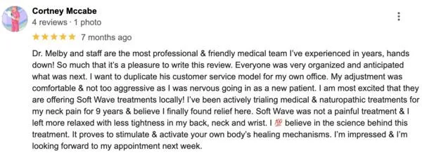 As part of this SoftWave™ Therapy special, you will receive the following at your appointment at Melby Chiropractic: